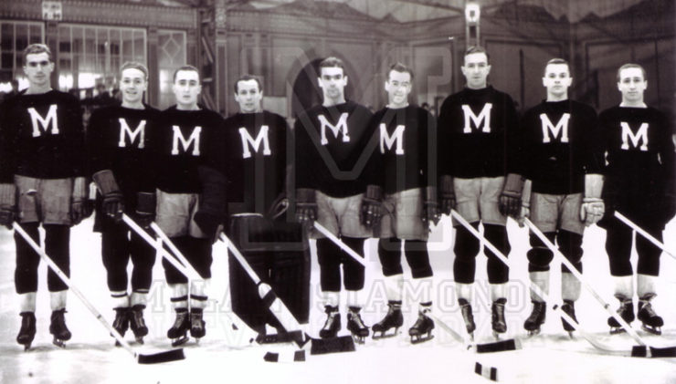 Il 31 ottobre si gioca la prima partita del girone A e al Piranesi il Milano campione d’Italia ospita lo Stade Français. I parigini sono in pista da un mese, il loro organico è zeppo di quebecois e anche il portiere arriva da oltre oceano, sono privi dell’infortunato Pete Bessone (americano di origini piemontesi), ma il loro roster basta e avanza. Il Milano, invece, ha alle spalle una sola settimana di preparazione, non può schierare l’italo-canadese Frank Roncarelli, che tornerà in Italia solo a febbraio. Per di più i neri (quello il colore del Milano in quegli anni) hanno perso Ignazio Dionisi che è passato ai Diavoli Rossoneri e, dopo l’improvvisa partenza di Roncarelli, non hanno avuto il tempo di tesserare alcun giocatore straniero. Finisce 3- 1 per i francesi. Il Milano passa in vantaggio all’inizio del secondo tempo, poi lo Stade rimonta e si porta a casa i primi due punti. La serata è stata guastata dal fenomeno della condensa e una fastidiosa foschia ha avvolto la pista per quasi tutta la durata del match. Nelle file milanesi ha esordito Pietro Covo, diciassette anni e mezzo, nato in Svizzera e cresciuto nei boys del Milano. La carta stampata segnala tra i migliori, per quel che si è potuto vedere, Gerosa e il diciottenne Franco Rossi. Negli intervalli stupenda esibizione di danza su ghiaccio della famosa campionessa olimpica Sonia Henie.