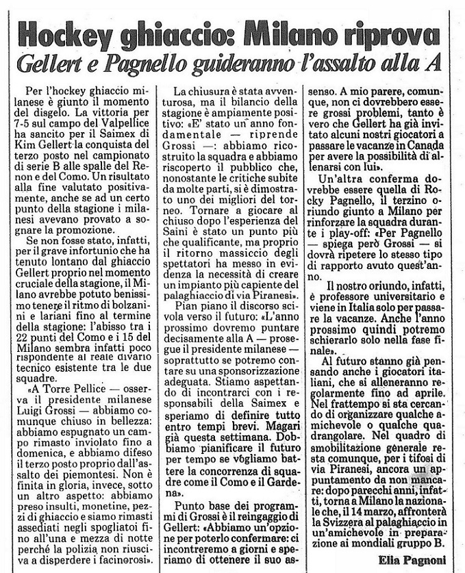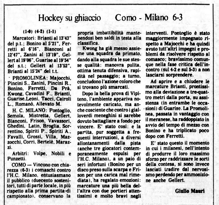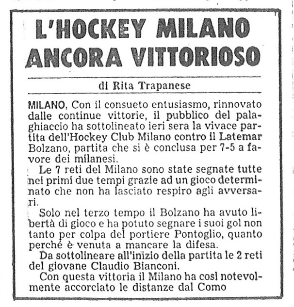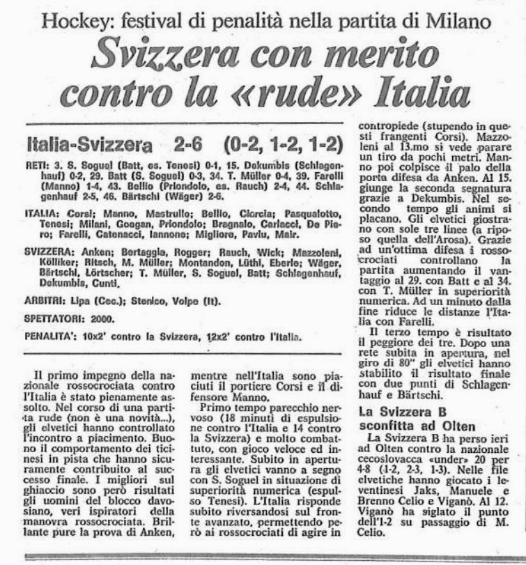 | 20 febbraio 1986: Milano-Fiemme 7-5 |