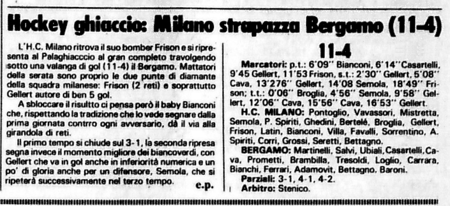 | 29 dicembre 1985: Bergamo-Milano 3-8 |