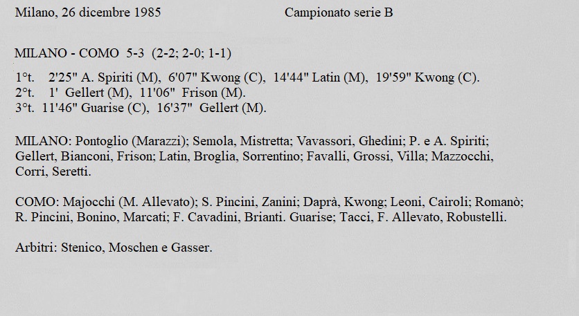 | 15 dicembre 1985: Fiemme-Milano 5-5 |