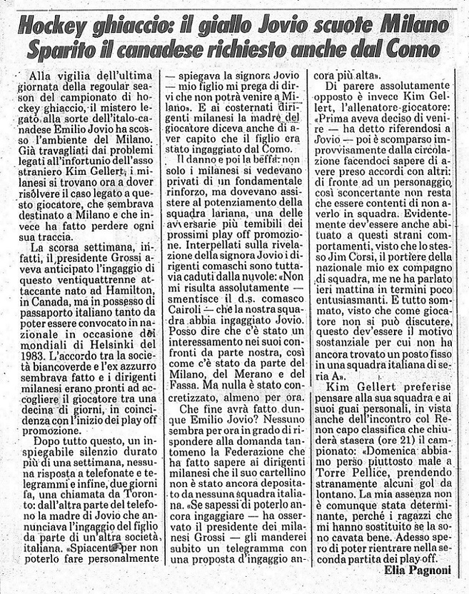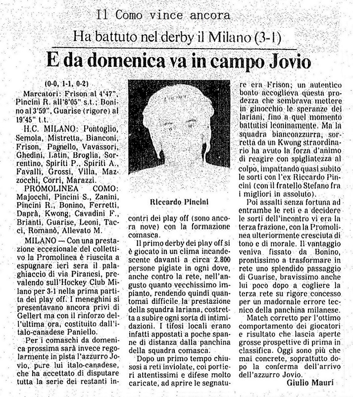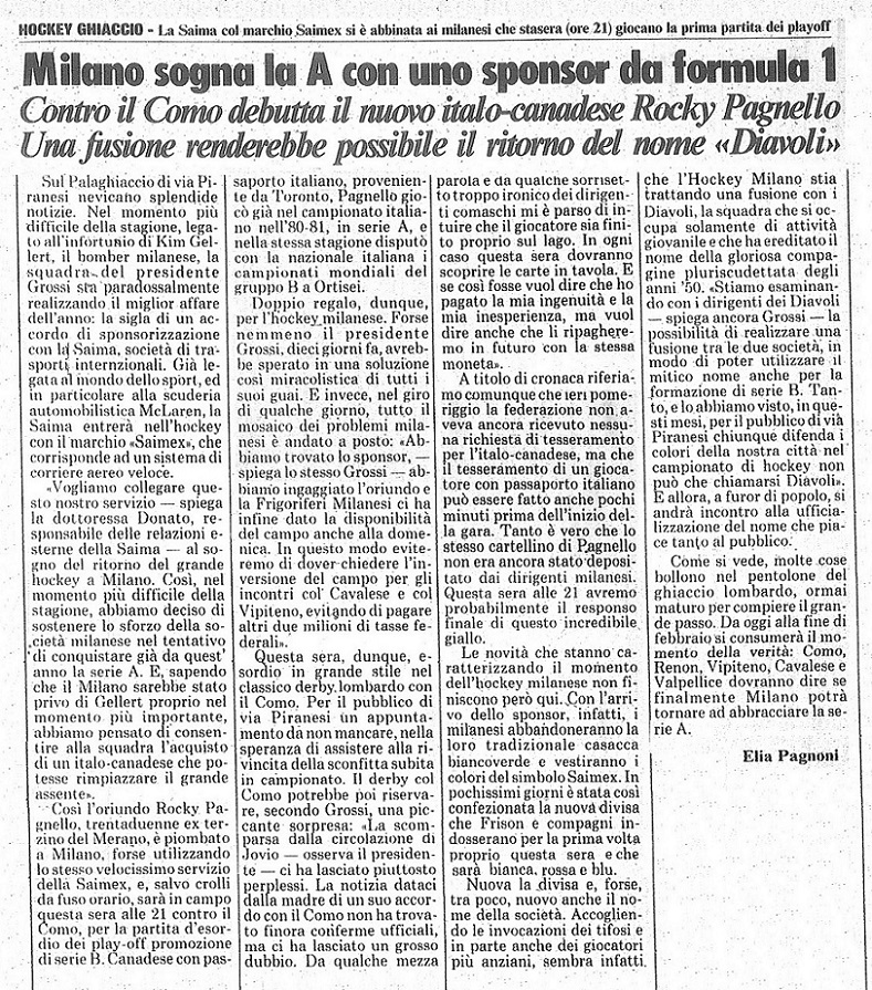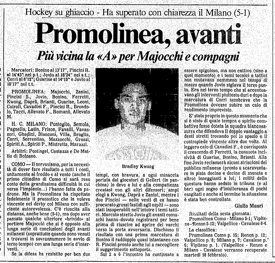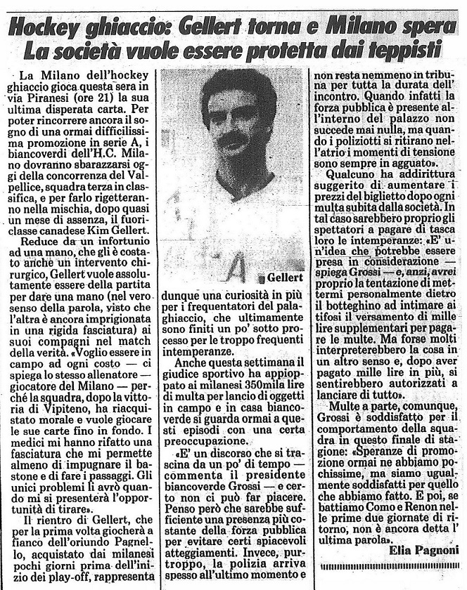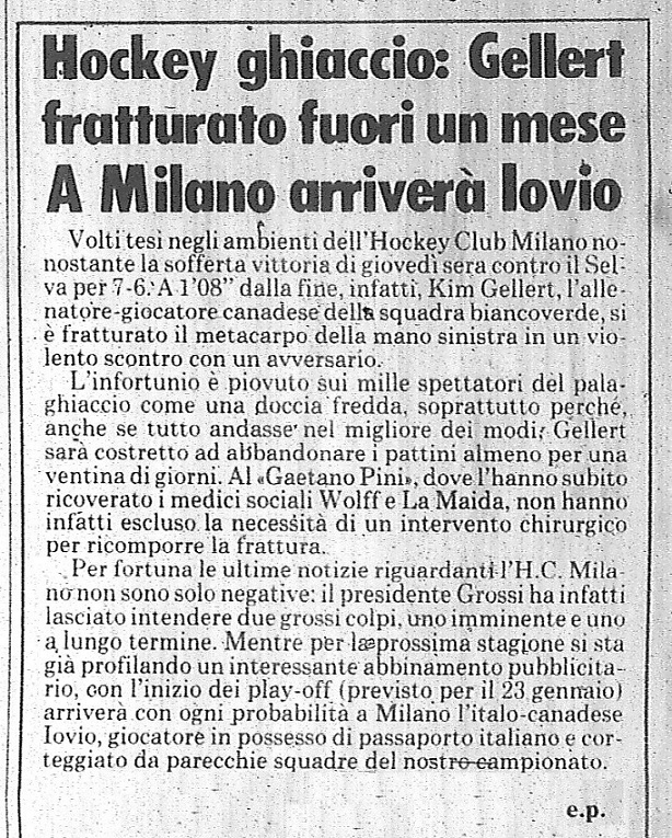 | 18 febbraio 1986: Fiemme-Milano 4-6 |