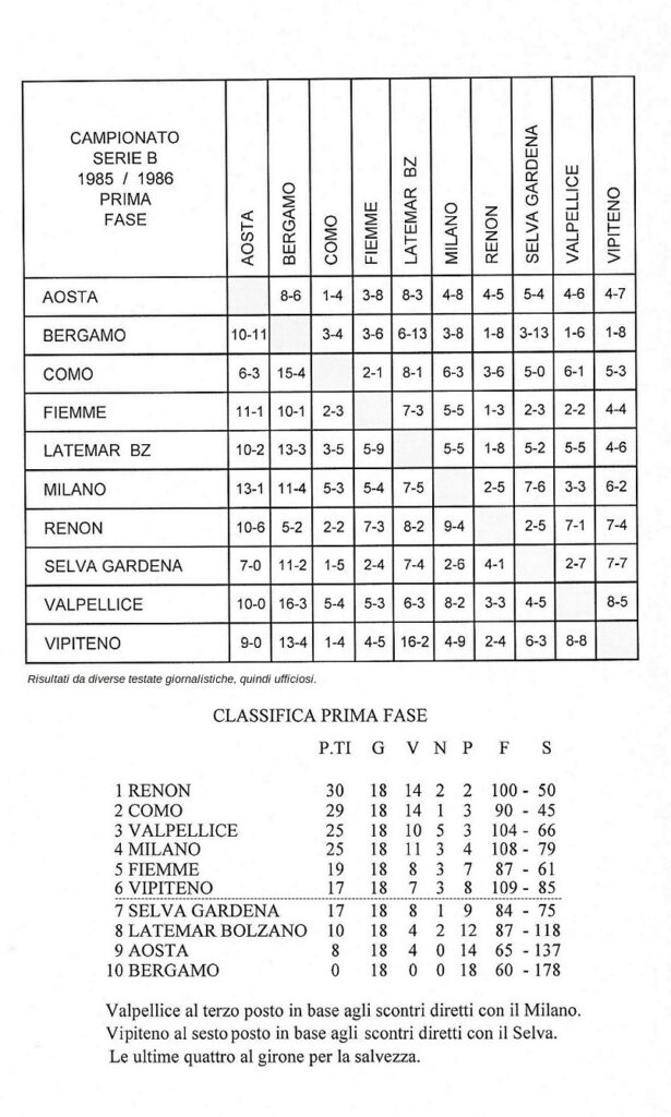 | 16 gennaio 1986: Milano-Renon 2-5 |