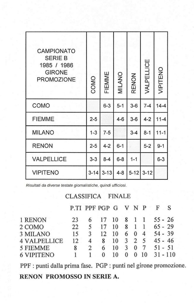 | 13 febbraio 1986: Milano-Renon 3-4 |