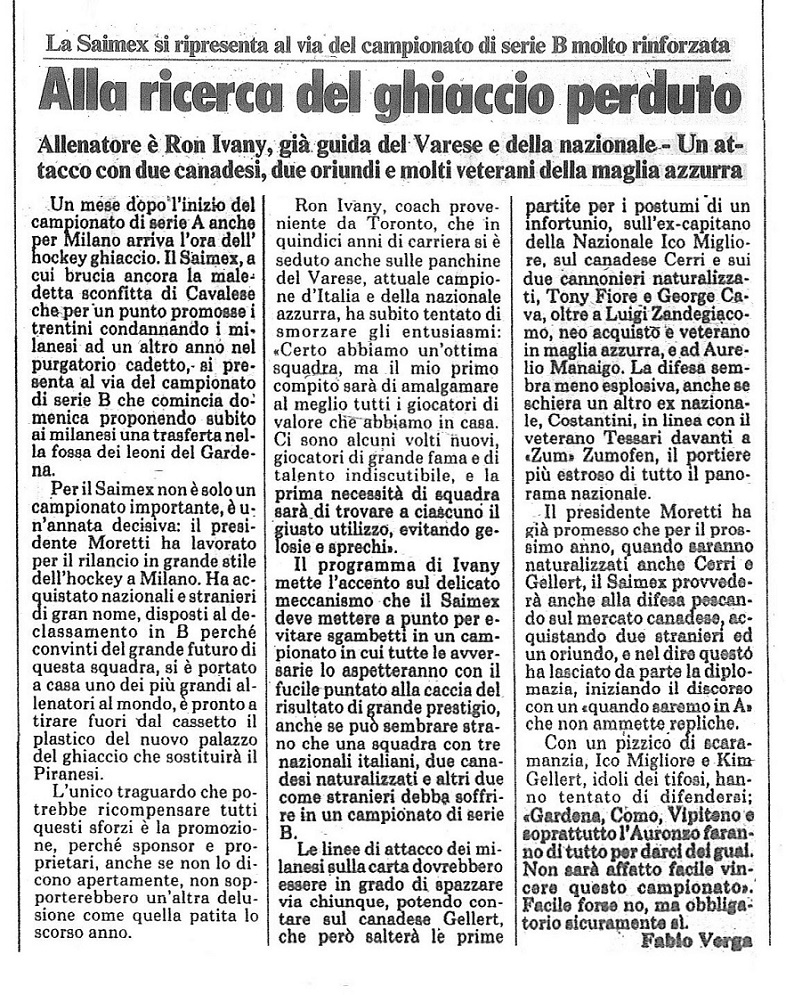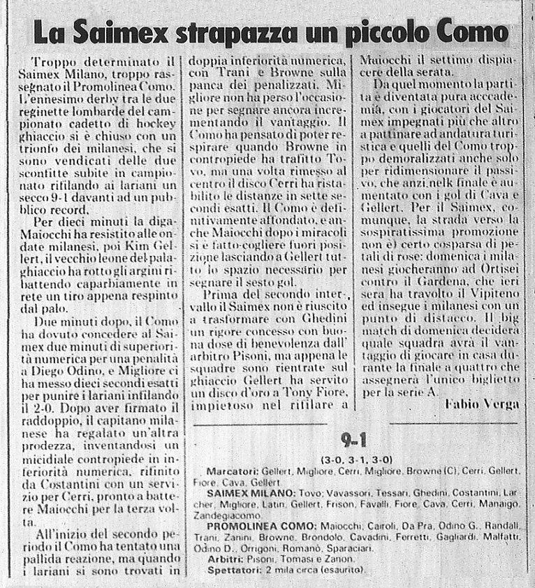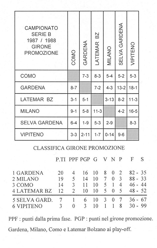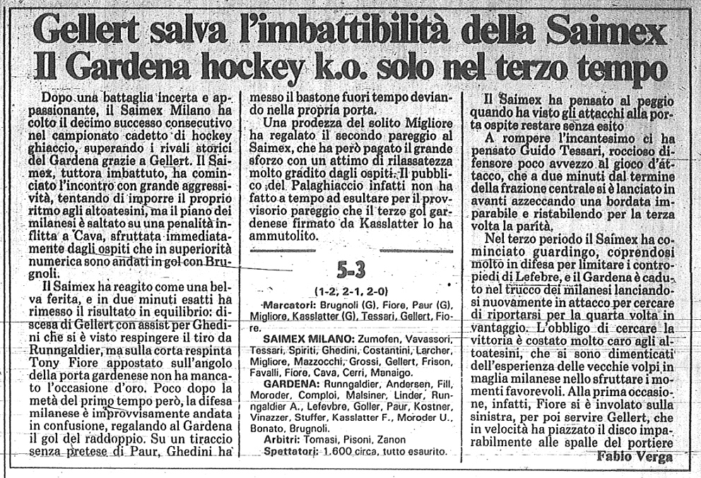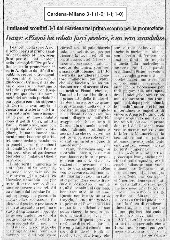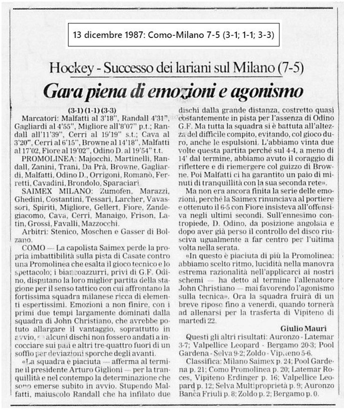 | 1 novembre 1987: Gardena-Milano 5-7 |