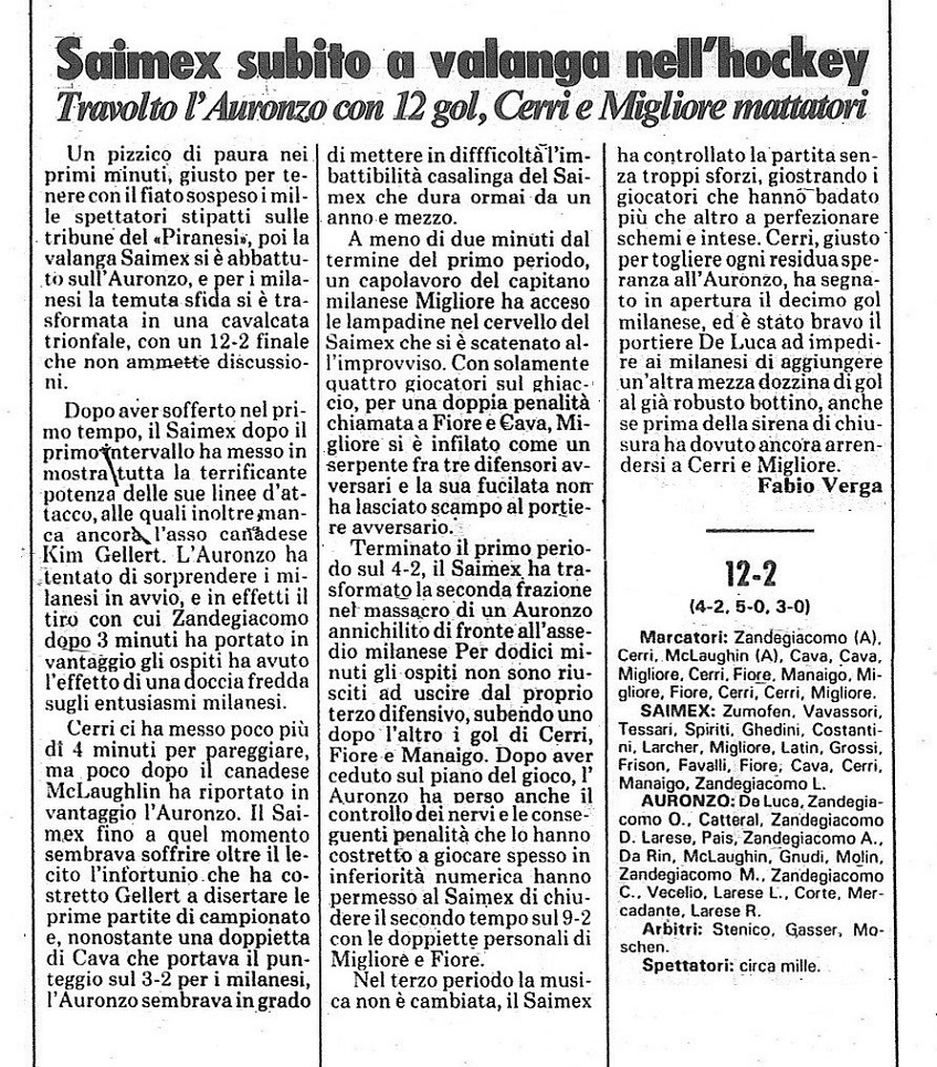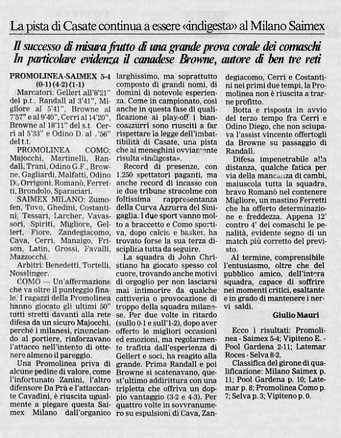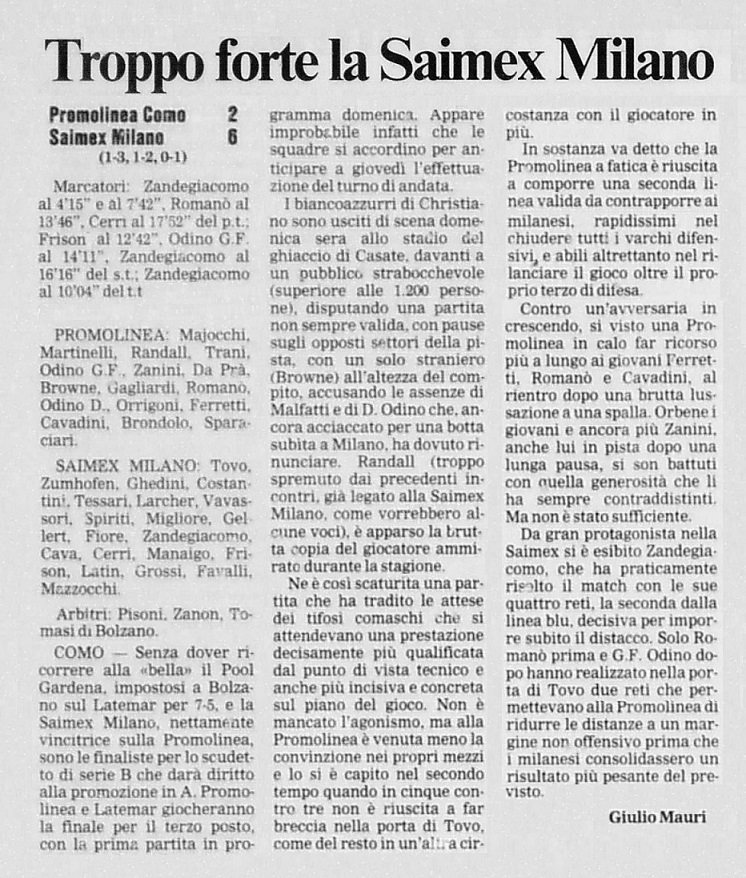 | 3 gennaio 1988: Latemar Bz-Milano 5-8 |
