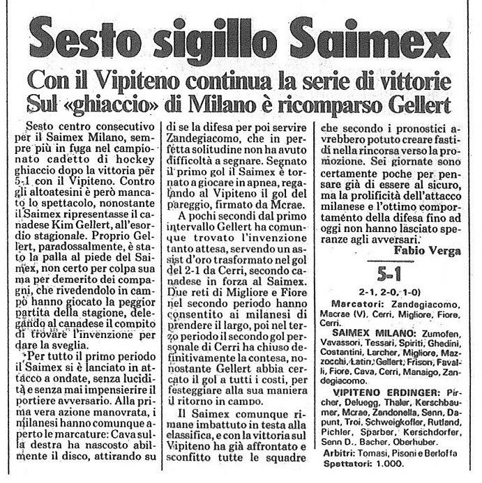 | 27 dicembre 1987: Vipiteno-Milano 4-6 |