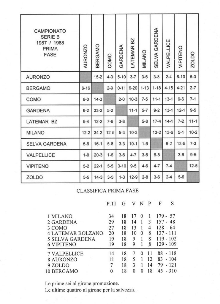 | 29 novembre 1987: Selva Gardena-Milano 1-6 |